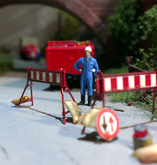 Beeinträchtigt wird die Ruhe, die sonst hier herrscht, heute durch einen Feuerwehreinsatz: Die Böschung oberhalb des kleinen Viadukts ist in Brand geraten. Zum Glück konnte ein Überspringen der Flammen auf den Hochwald verhindert werden.