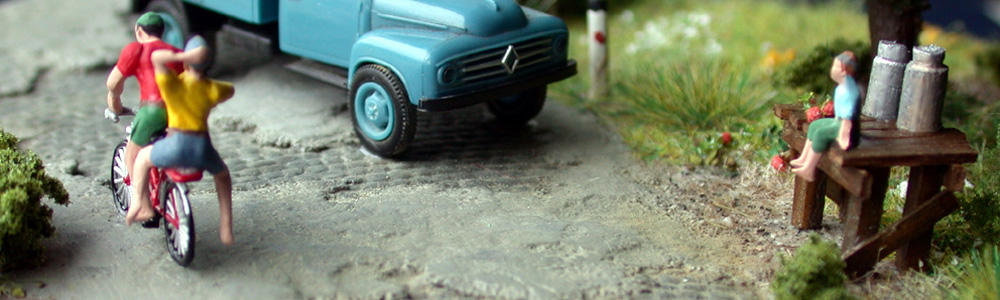 ... das sind umfangreichere Szenerien, die als Dioramen meist im Zusammenhang mit der Modellbahn stehen. Die Spurbreite ist H0 im Maßstab 1:87. Als Experte werden Sie auf den entsprechenden Fotos leicht das eingesetzte Modellbahnsystem erkennen, das heute schon einen gewissen Seltenheitswert besitzt - Trix express.