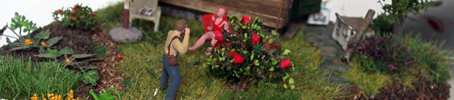 Da zum Thema Glück schwere Gartenarbeit nicht so richtig passen würde - die die beiden oft genug verrichten - zeigt das Diorama mehr die Freizeit- und Erholungsmöglichkeiten, die so ein schönes Stück Natur ebenfalls bietet.